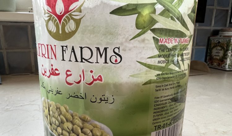 Πρόκειται για ελιές που παράγονται στην τουρκοκρατούμενη περιοχή της Συρίας στο Άφριν.
