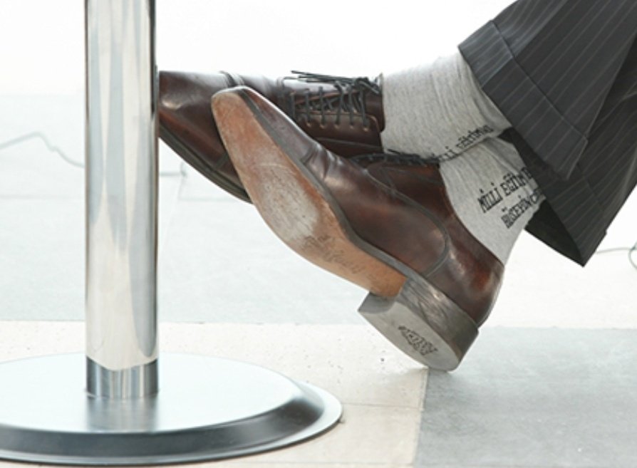 Κάλτσες-καρτβιζίτ υου υπουργού Παιδείας Χουσείν Τσελίκ που γράφουν πάνω ¨Υπουργός Εθνικής Παιδείας Χουσεϊν Τσελίκ.