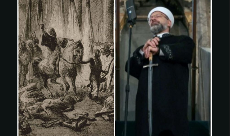 Ο Μωάμεθ ο Β’ ο Πορθητής μπαίνει με το ξίφος (και πατώντας επί πτωμάτων αμάχων) στην Αγιά Σοφιά τo 1453, ο Σειχουλισλάμης κάνει Μπαϊράμι με το ξίφος μέσα στην Αγιά Σοφιά το 2021, στην Μεγάλη Εκκλησία που χτίστηκε έναν αιώνα πριν εμφανιστεί το Ισλάμ.