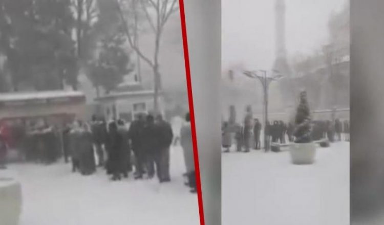 Στους -5 βαθμούς στην περιοχή Σουλτάντσιφλιγί ο κόσμος περιμένει υπομονετικά για να αγοράσει φτηνό ψωμί από το περίπτερο του δήμου Κωνσταντινούπολης ….
