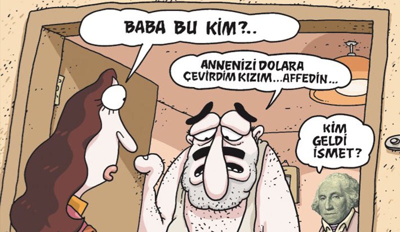 Το σκίτσο μεταφορικά δείχνει την απελπισία των Τούρκων που μετατρέπουν τα υπάρχοντα τους σε δολάρια !