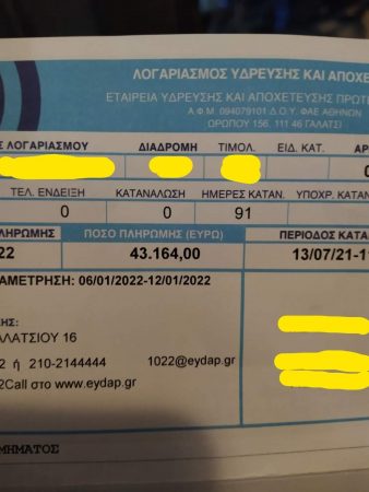 Λογαριασμός ΕΥΔΑΠ διαμερίσματος ευάλωτου “επενδυτή”…