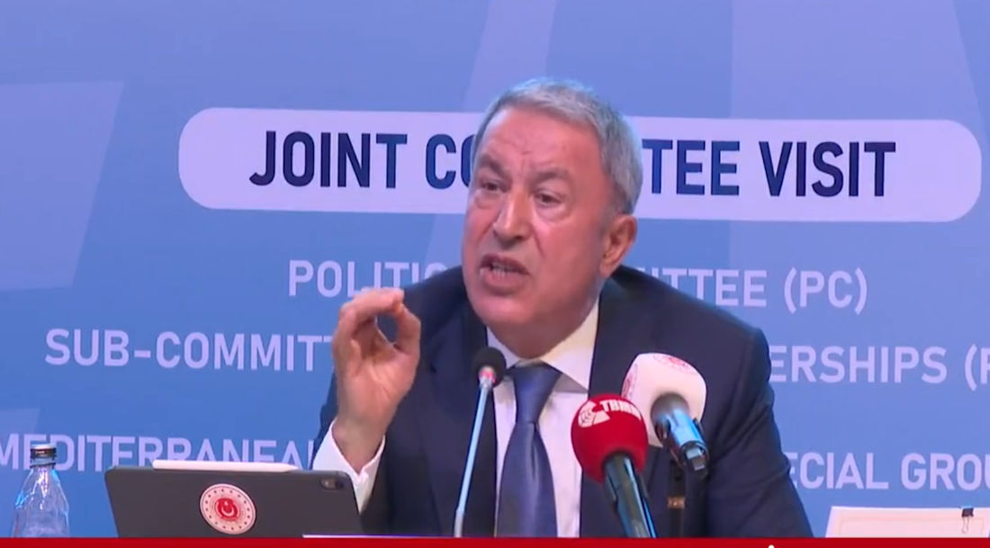 ¨Ο κύριος Πρόεδρός μας έκανε εδώ πέρα μία συνάντηση με τον κύριο Μητσοτάκη. Το πιο σημαντικό στοιχείο της συνάντησης και της ομιλίας που έγινε εδώ ήταν το εξής : Τις μεταξύ μας σχέσεις και τα θέματα που υπάρχουν μεταξύ μας, να τα συζητάμε μεταξύ μας και να μην τα μεταφέρουμε σε τρίτες πλευρές. Να μην τα πηγαίνουμε σε τρεις πλευρές. Δηλαδή ότι πρόβλημα υπάρχει μεταξύ Τουρκίας και Ελλάδας ή μεταξύ Μητσοτάκη και Πρόεδρο Ερντογάν να καθίσουμε απέναντι και να συζητήσουμε. Και ειπώθηκε ένα “Ναι” σε αυτό. Ο κύριος Μητσοτάκης συμφώνησε σε αυτό. Αλλά σε πολύ σύντομο διάστημα αφού το είχε πει αυτό, πήγε εκεί και κατήγγειλε οτιδήποτε υπήρχε σχετικά με τις διμερείς σχέσεις, με τρόπο που δεν ταιριάζει καθόλου ανάμεσα σε δύο γειτονικές και συμμαχικές χώρες¨