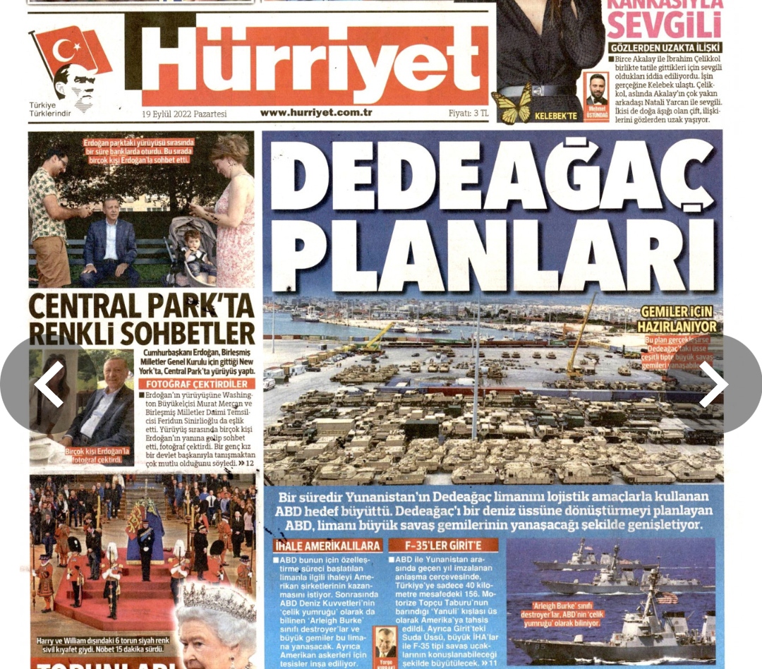 Η καθεστωτική Χουριέτ ανησυχεί για την Αλεξανδρούπολη…