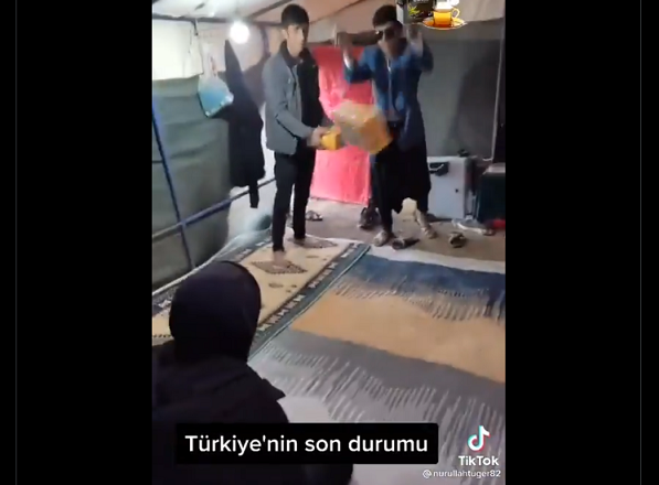 Ακούγεται η μουσική από το τραγούδι ¨Ρετζέπ Ταγίπ Ερντογάν¨, μπαίνει στο τσαντίρι κάποιος που υποτίθεται πως είναι o Ερντογάν και μετά πετά στον ¨κόσμο¨συσκευασία τσαγιού….
