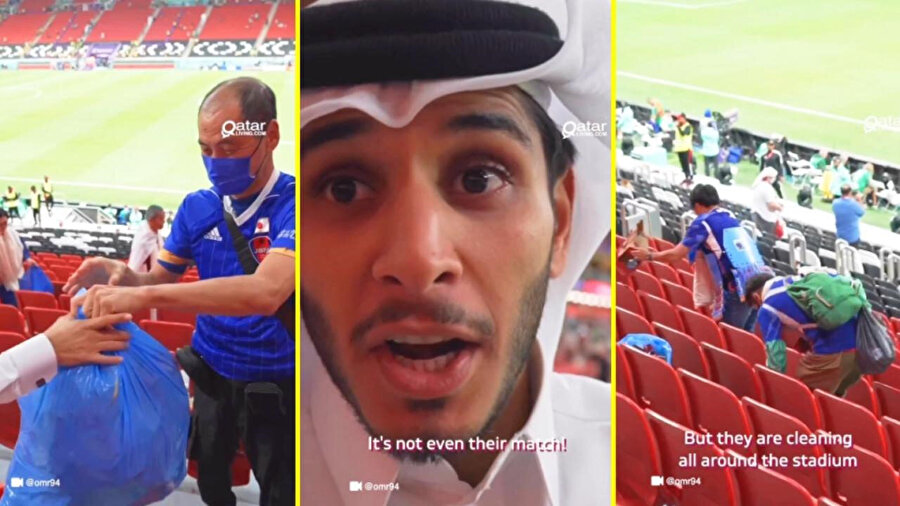 Dünya Kupası'nın açılış maçının ardından stadyumu temizleyen Japon taraftarlar Arapları şaşkına çevirdi pic.twitter.com/LOhWSUXo53