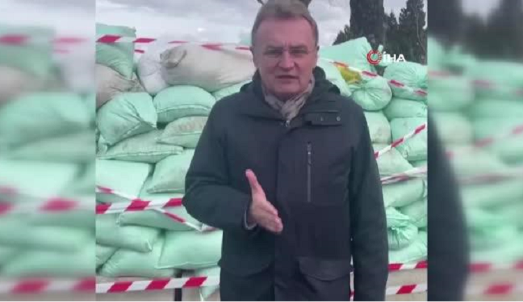 Ο Αντρέι Σάντοβι, δήμαρχος της πόλης Λβιβ, που βρίσκεται στη δυτική περιοχή της Ουκρανίας, απευθύνθηκε στο κοινό.