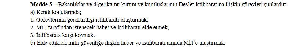 Στην Τουρκία όλοι οι εργαζόμενοι σε κρατικές δημόσιες υπηρεσίες είναι υποχρεωμένοι μόλις αποκτούν ειδήσεις που αφορούν την “εθνική ασφάλεια” να ενημερώνουν αμέσως την ΜΙΤ.