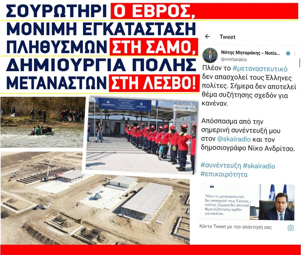 Τελικά, εκτός από το να στήνει Υπερδομές και να κάνει μόνιμη εγκατάσταση πληθυσμού μεταναστών πάνω στα σύνορα, ο κ. Μηταράκης είναι ικανός για κάτι άλλο;