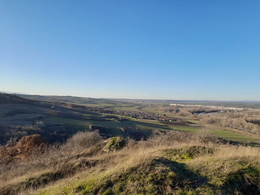 To χωριό Δίλοφος, ο ποταμός Έβρος και στο βάθος το τουρκικό τελωνείο