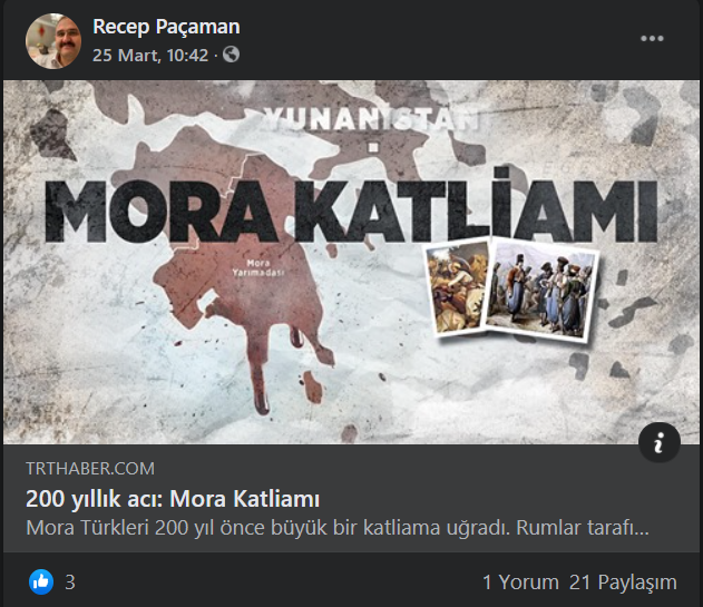 Και εδώ μας διαφημίζει ένα κείμενο του κρατικού TRT με τίτλο ¨200 ετών πόνος: Σφαγή του Μοριά¨
