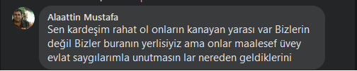 ¨Αδερφέ εσύ να είσαι άνετος, αυτοί έχουν την πληγή που αιμορραγεί και όχι εμείς. Εμείς είμαστε οι ντόπιοι εδώ, αλλά δυστυχώς εκείνοι είναι θετά παιδιά. Με σεβασμό και να μην ξεχνάνε από που ήρθαν¨